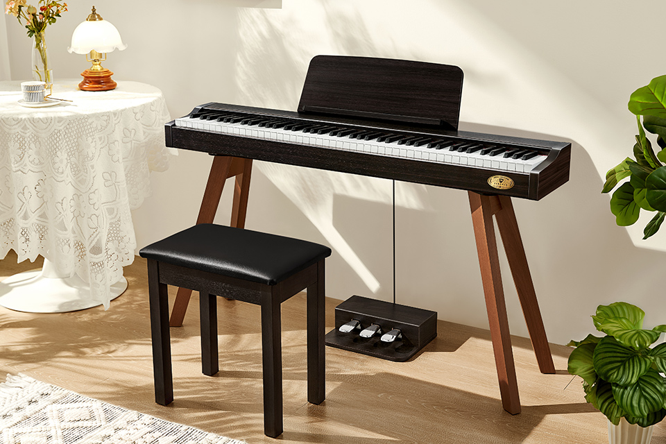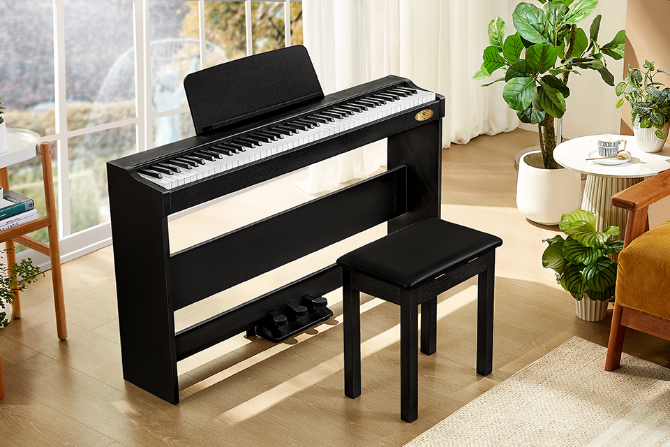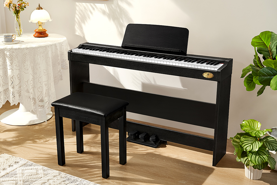 全尺寸標準鋼琴鍵,媲美真鋼手感的重錘鍵盤,讓演奏者能輕松彈奏高難度樂曲 |