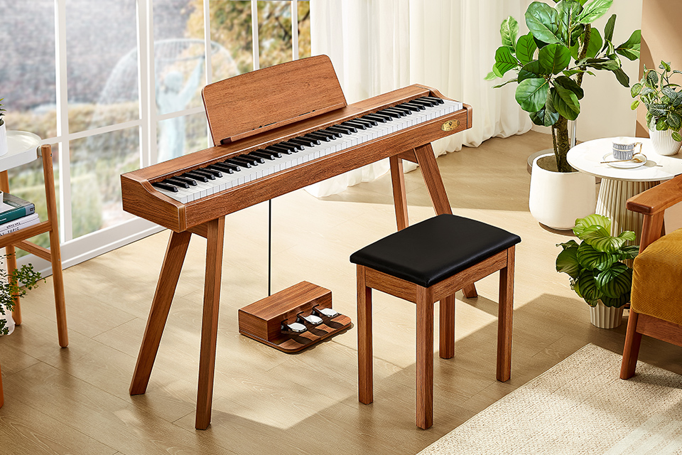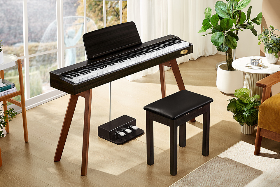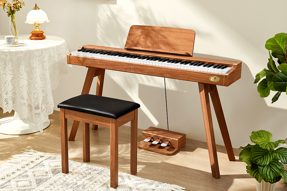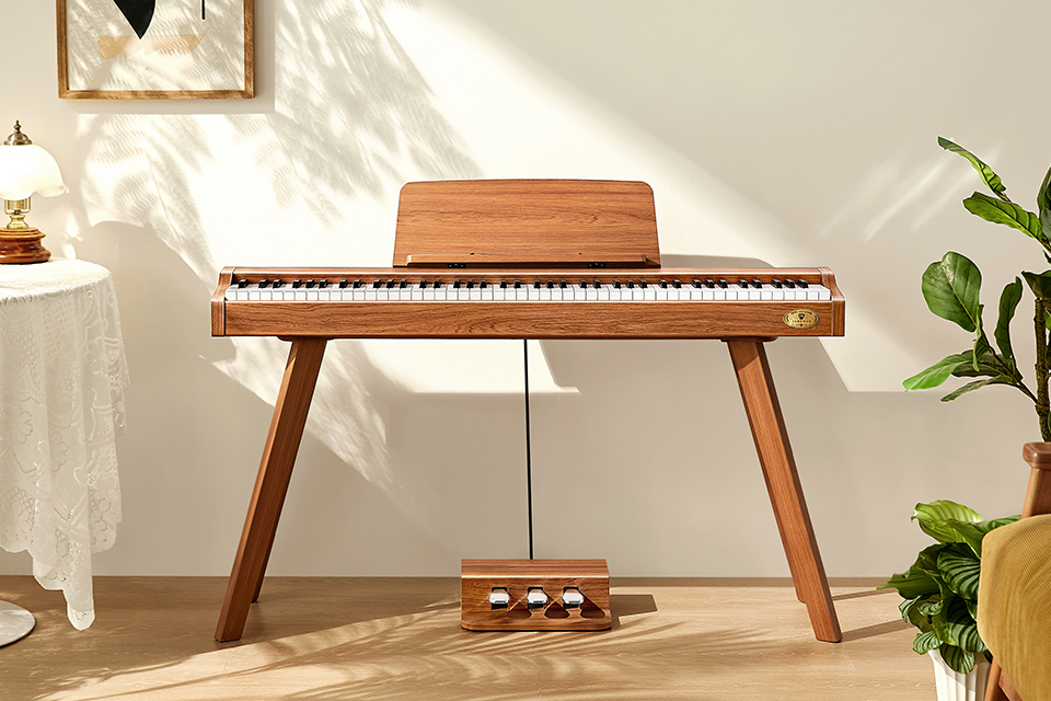 P37通過簡約時尚的外觀與周圍環(huán)境相呼應(yīng),全新的設(shè)計風(fēng)格消除傳統(tǒng)鋼琴的曲線和笨重感;通過木制家居風(fēng)格的設(shè)計,使P37現(xiàn)代數(shù)碼鋼琴可以自然融入家中,更緊湊的體積不占用空間,即便在臥室也能自由暢快地盡情演奏。 |