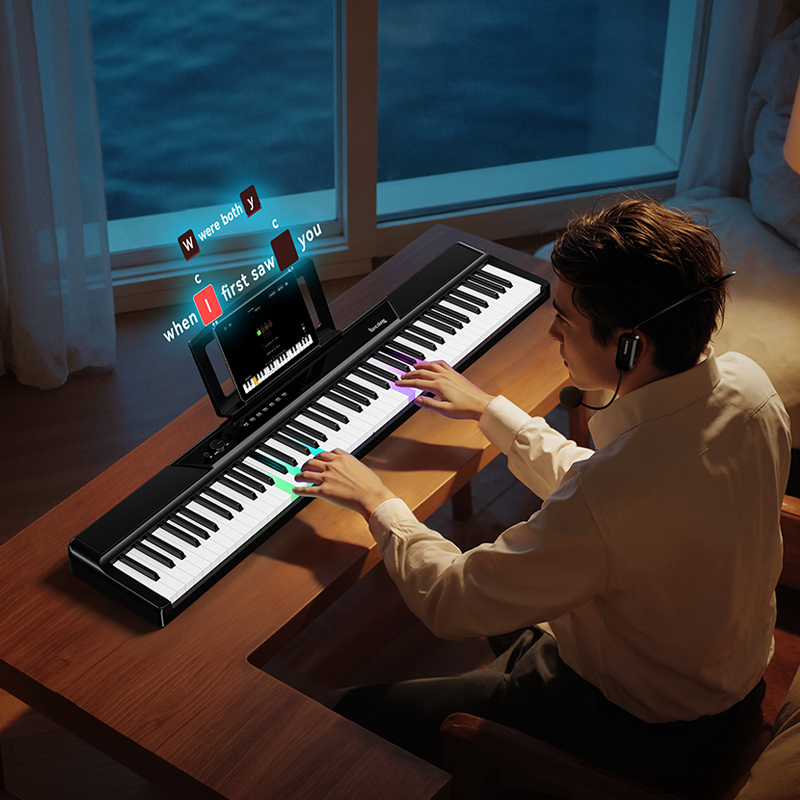 | 其他功能 | 節拍器、移調、和弦、雙鍵盤功能、音量調節、啟停、節奏、錄音/播放、速度、教學等 | ||
