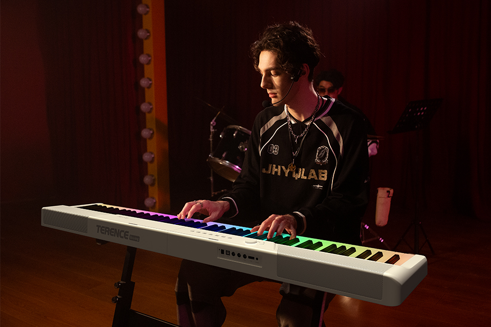 仿象牙質感的鋼琴鍵盤,更接近傳統鋼琴的觸感,模擬鋼琴的下鍵深度、更高靈敏度的鍵盤反饋,彈奏時能表現出細致的強與弱,更接近真實鋼琴演奏感;每一次力度調整,都能清晰感知旋律變化。