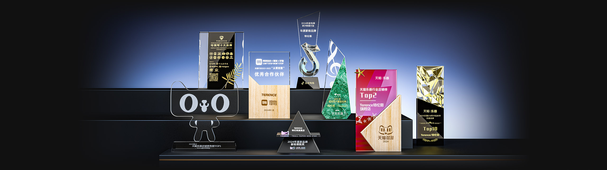 特倫斯樂器旗艦店榮獲:2022年天貓樂器行業TOP1、2023年天貓618樂器行業TOP1、2024抖音電商年度新銳品牌、2024天貓樂器店鋪TOP2、2024天貓年度新品牌新銳領航獎、2023年京東最受用戶喜愛品牌等獎項;